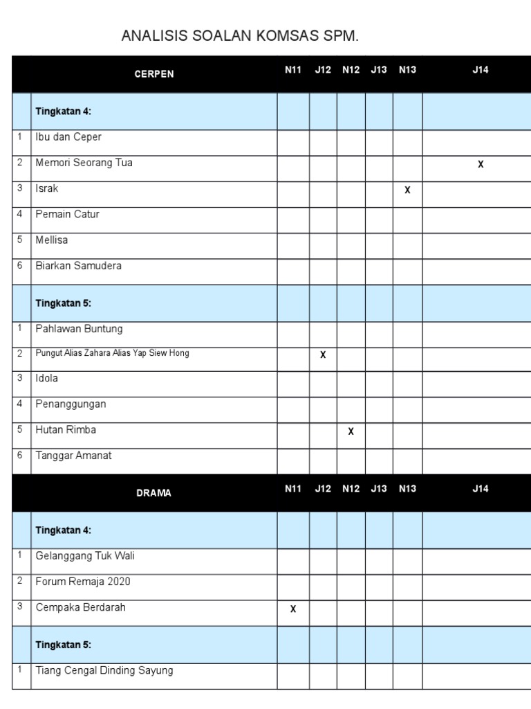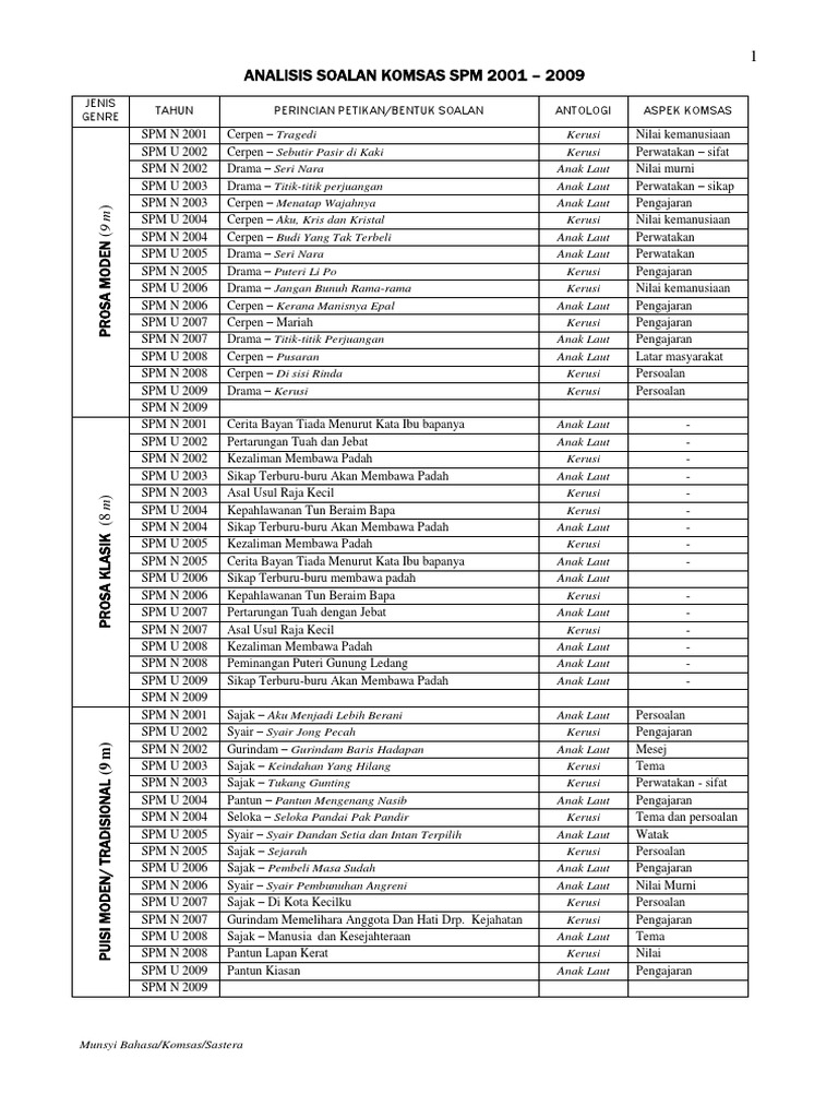 Analisis Soalan Komsas Spm N U 2001 2009 Pdf